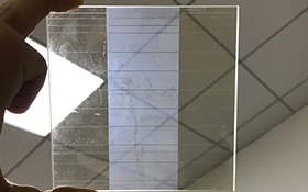 玻璃、PET基底上薄膜激光刻蝕,觸摸屏、光伏太陽能電池、電至色玻璃、其它顯示屏??捎糜趯щ娿y漿、ITO、FTO、氧化鋅、氧化鋯、氧化鈦、碳粉、金、銀等導電金屬、氧化物材料處理(只能針對單層材料激光刻蝕)。